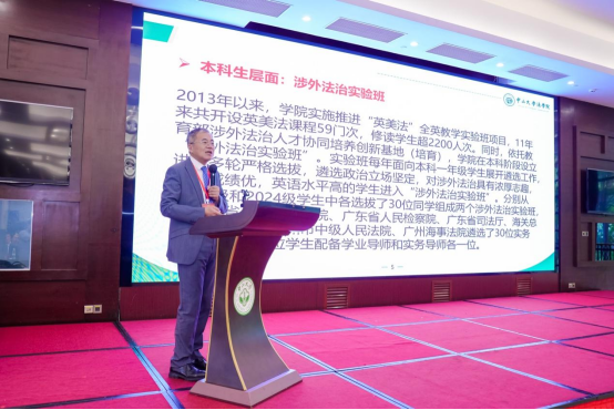 广东省法学会党组成员、专职副会长兼秘书长金艳在致辞中指出,在当前世界经济承压、全球治理体系加速改革的背景下,中国需强化战略,参与国际规则制定。从涉外法治建设成效来看,广东省自2023年起连续三年召开全省涉外法治建设工作会议,以“建设三个一流”为目标,通过培育强基等四大工程、建设协同培养创新基地,吸引600余名港澳律师加入大湾区队伍,人才建设成效初显。就涉外法治人才培养重点而言,需构建校地协同育人机制,发挥学校基础作用,依托企业、律所等提供实战平台,选拔高精尖人才,并借大湾区优势对接国际,助力中国向国际规则塑造者转变。