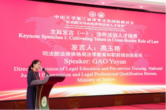 司法部法律资格局法学教育和职前培训处处长高玉艳围绕《加强交流协作,以高质量人才培养保障涉外法治建设高质量发展》展开分享。她指出,司法部高度重视涉外法治人才培养,在中央依法治国办统一领导下,聚焦人才培养、使用、储备、推送各环节,不断加大工作力度,取得积极成效。在涉外法治人才培养过程中,需持续深化对习近平法治思想,坚持以实践为导向,进一步凝聚协同推进涉外法治人才培养的工作合力,着力强化协同育人机制建设,着力拓展实战实训平台范围,牢牢把握法律专业学位研究生的培养目标,推动法律专业学位研究生教育工作高质量发展。