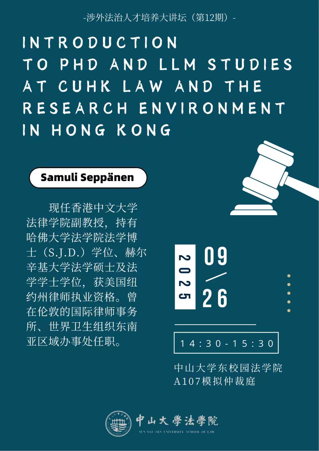 涉外法治人才培养大讲坛(第12期):香港中文大学法律学院法学博士、法学硕士课程项目以及香港研究环境介绍