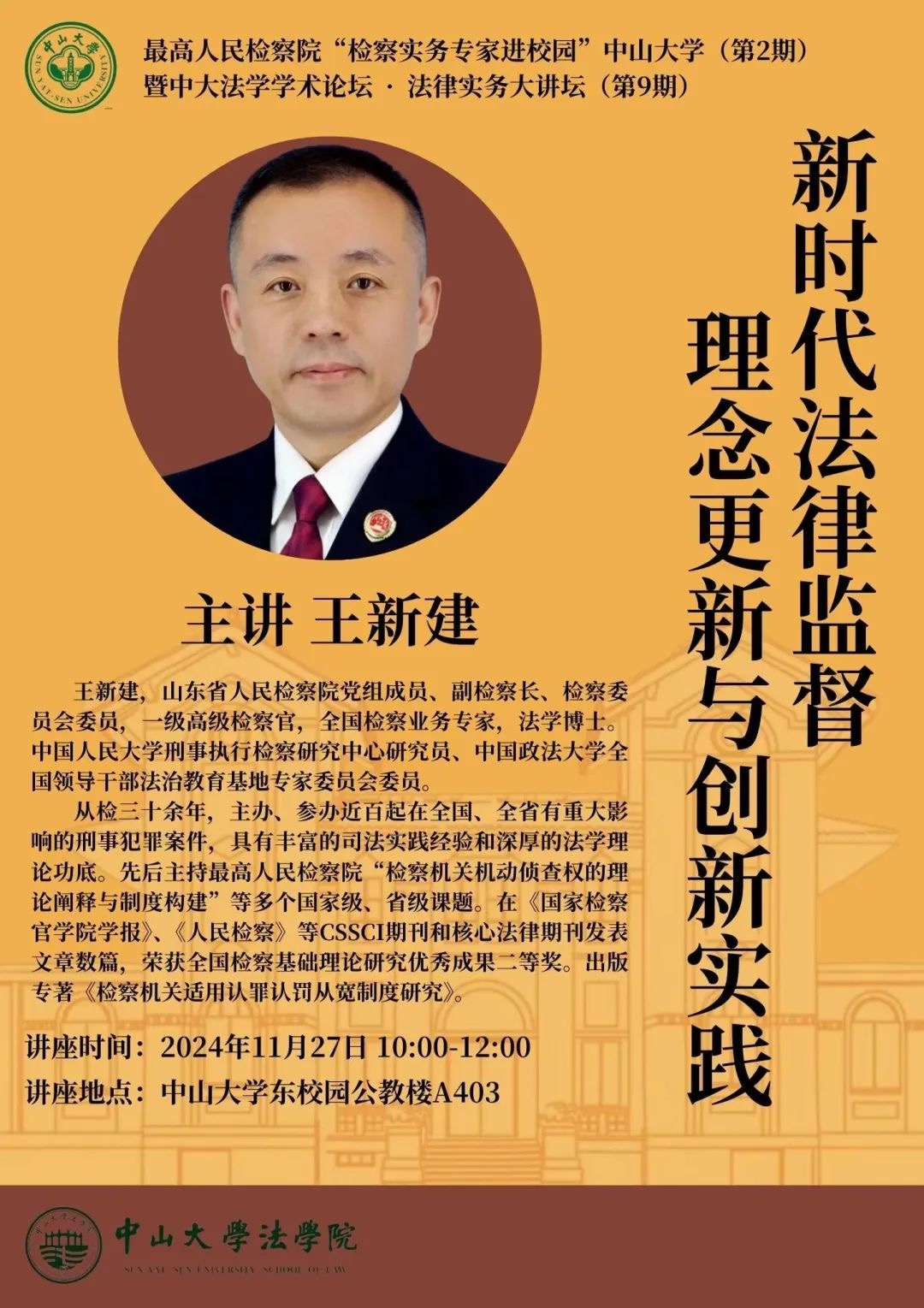最高人民检察院“检察实务专家进校园”威廉williamhill(第2期)、中大法学学术论坛·法律实务大讲坛(第9期)——新时代法律监督理念更新与创新实践