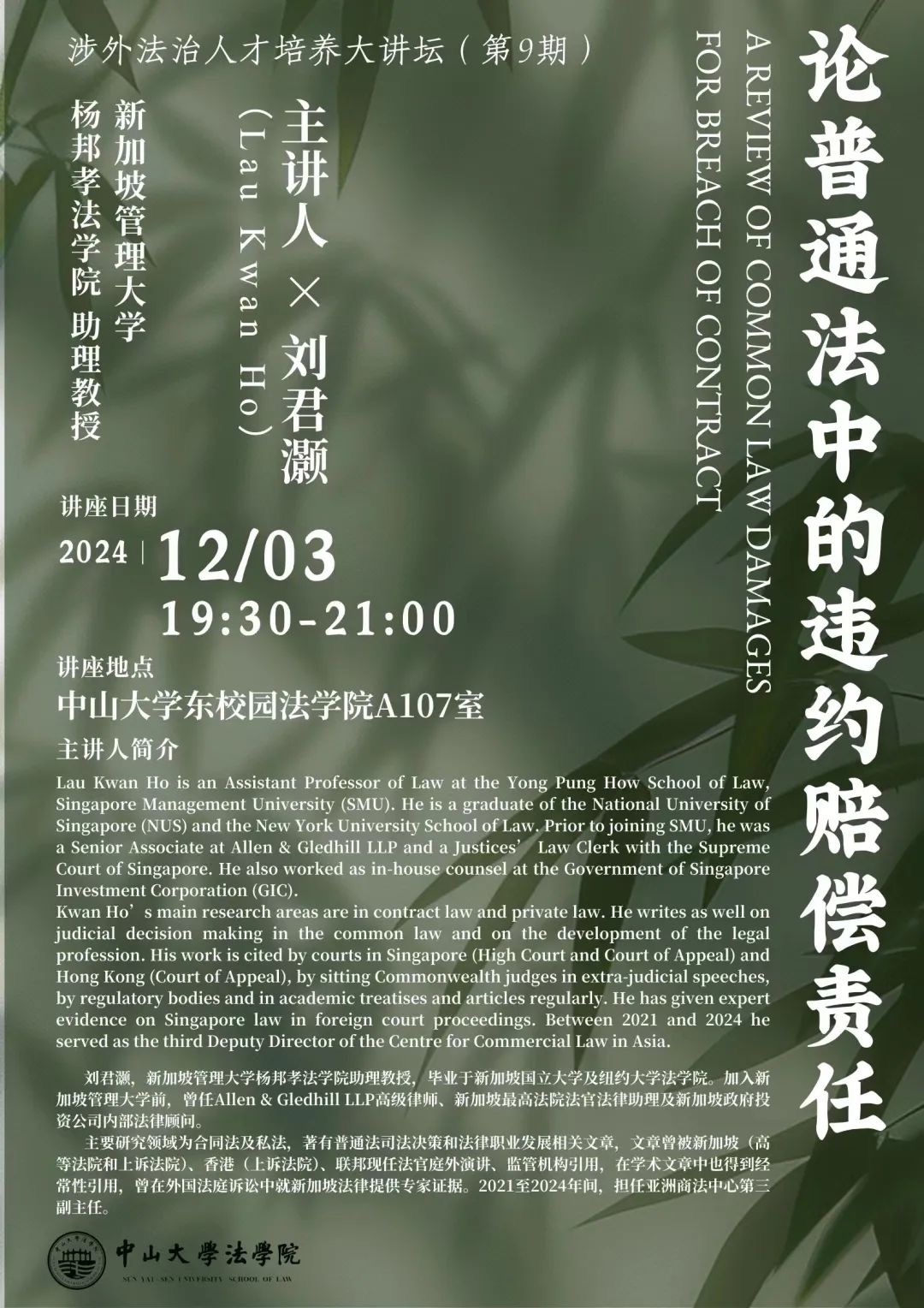 涉外法治人才培养大讲坛(第9期)—— 论普通法中的违约赔偿责任